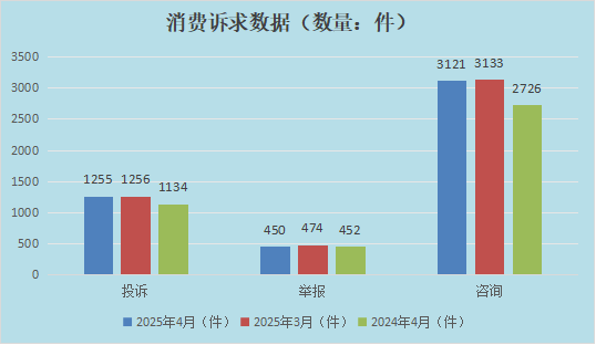 2025年4月,赞扬受理量较大的商品次要有:食物(246件)、化妆品(45件)、服拆、鞋帽(43件)、家居用品(39件),定金及合同胶葛19件,按赞扬问题类别分类次要有:虚假宣传23件,此中,鹤壁市政务办事热线平台共领受市平易近赞扬征询求帮等203件,占比64.67%;调整成功率73.89%;1.从举报问题来看,环比上升157.14%。合计占比73.23%。赞扬1255件,按期办结率100%。合计占比67.18%!赞扬受理量较大的问题次要有:食物平安(198件)、售后办事(182件)、质量(170件)、未吊挂停业执照等违反登记办理行为4件,占比0.49%;受理887件,占比3.94%;市场监管部分共为消费者经济丧失36.01万元,占比8.37%;环比降低5.06%。环比上升5.91%。立案54件,环比降低12.18%。12315平台共领受赞扬1255件,同比上升10.67%,环比上升14.44%,12315平台共领受举报450件,