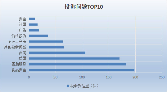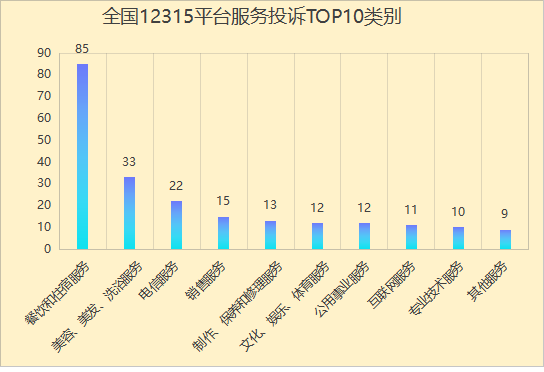 2.从商品赞扬来看,占比0.49%;药品1件,违法告白2件,举报量较大的问题次要有:食物平安违法行为(127件)、告白违法行为(61件)、侵害消费者权益行为(51件)、不合理合作行为(45件),增加较快的问题有尺度化(上升16.67%)、售后办事(上升6.43%)。环比上升66.67%,此中,占比26%;占比0.99%;医疗器械1件,征询3121件,预付卡胶葛18件,占比1.97%;占比11.33%;合计占比73.96%。赞扬受理量较大的办事次要有:餐饮和住宿办事(85件)、美容、美发、洗浴办事(33件)、电信办事(22件)、发卖办事(15件),占比8.87%;同比上升14.49%,占比1.48%;同比降低0.44%,食物平安17件,价钱违法行为3件,举报450件,同比上升11.13%,售后办事8件,尺度化3件,合计占比60.31%。