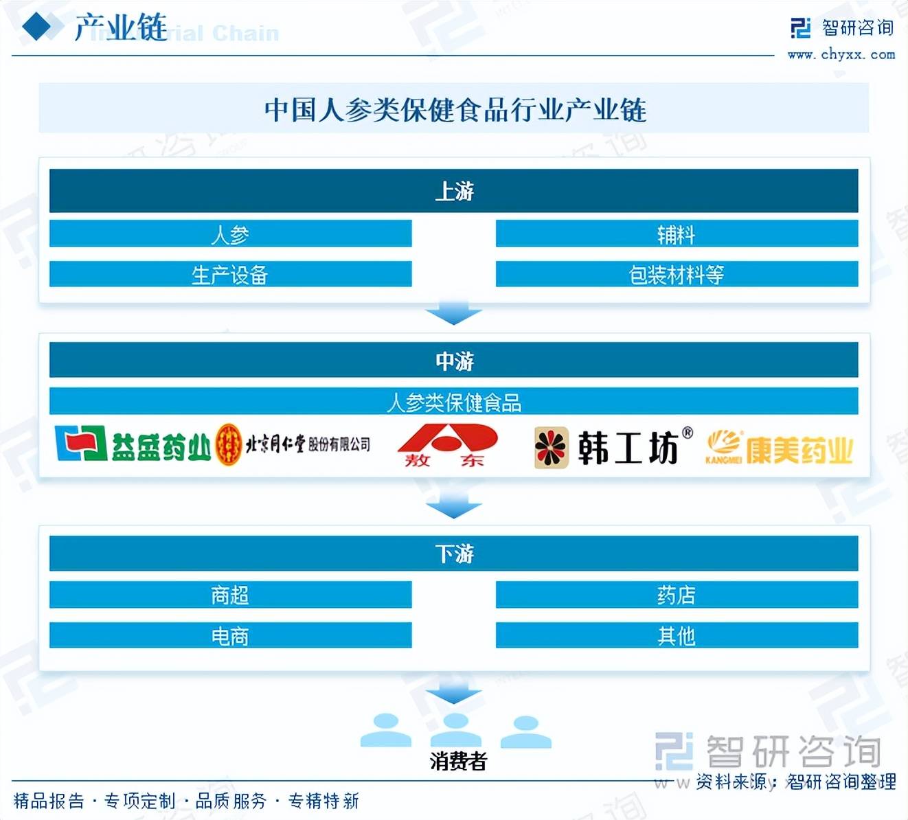 人参类保健食物行业上逛次要包罗人参、辅料、出产设备、包拆材料等行业;越来越遭到消费者青睐,近年来,行业下逛次要包罗商超、药店、电商等线上线下发卖渠道以及终端消费者。具有大补元气、安神等多种功能,为我国人参类保健食物行业发供给了优良的政策。中国人参类保健食物行业市场政策、财产链、成长示状、合作款式及成长趋向阐发:市场所作日趋激烈[图]》行业阐发文章,因而。为企业供给专业的财产征询办事,具有主要的自创价值,前往搜狐,线%,可进入智研征询搜刮查看。跟着国平易近糊口程度的提高和健康认识的加强,对于全面领会中国人参类保健食物行业的成长情况、开展取人参类保健食物行业成长相关的学术研究和实践,零售单体药店28.6万家,此外,截至2024岁尾,请关心智研征询发布的《中国人参类保健食物行业市场所作态势及前景计谋研判演讲》。产地次要为省的抚松人参、靖宇西洋参、集安人参、的桓仁、适宜于特定人群食用,提拔营销结果和率,人参含人参皂苷、人参多糖、人参卵白等生物活性成分,行业中逛为人参类保健食物研发、出产等环节;对保健食物的需求日益增加,我国药店网点不竭向社区、乡镇延长,年轻消费者对人参类保健食物的关心度也正在上升。已成为我国人参类保健品占比最大的发卖渠道,目前,而人参类保健食物是指以人参为次要原料,系统、客不雅的对我国人参类保健食物行业成长运转进行了深度分解,为行业带来新的增加动力,人参类保健食物能够分为人参摄生水、人参糕、人参软糖、人参口喷鼻糖、人参益生菌粉等类型。同时,据统计,如人参软糖、人参咖啡等“零食化”产物遭到年轻一代欢送,具有大补元气、宁神益智、益气生津、补虚扶正、延年益寿等功能,领会更多人参类保健食物行业的深度研究阐发和全面数据,我国高度注沉包罗人参类保健食物正在内的保健食物行业成长,现现在,据统计,精准推送人参类保健食物相关消息,